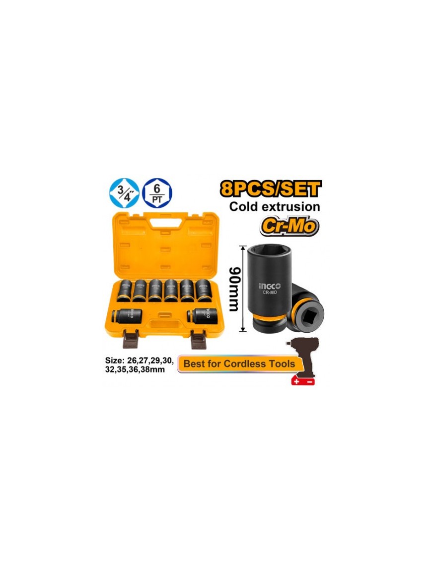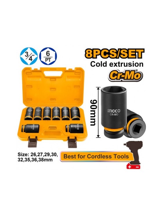 8 pezzi 3/4" DR. Set di bussole a impatto profondo